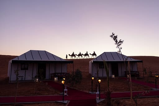 The 3 day desert tour from Marrakech to Fes is one of the most popular desert tours from Marrakech that connects the two imperial cities. This whirlwind Desert Tour from Marrakech to Fes lets you discover a big part of the south of Morocco, begin in the ocher city of Marrakech, cross the beautiful scenery on the curvy roads of the high atlas mountains and perched berber villages blending with the mountains, to the infamous kasbahs of Ait benhaddou fortified village and Ouarzazate with its cinematic attractions, spending the first night in the heart of the dades gorges in a traditional but comfy hotel. The second day lets you enjoy a short walk in the todra immense gorges before heading towards Merzouga. Ride the camels and go deep in the desert to spend a night in a luxury camp. Enjoy a starry night under a clear and peaceful sky, spend some quality time with the staff with music around fire after a delicious dinner.